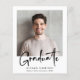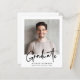 Anúncio de graduação moderno e amigável em orçamento com sua foto e "Formando" em um roteiro na moda ousado. Adicione o nome do formando, a escola e o ano de aula em tipografia simples.