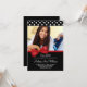 Convites para Anúncio de Graduação de Fotografias do Red Arco Bolinhas. Um padrão de bolinhas na moda preto e branco com uma ilustração vermelha de fita. Perfeito para a graduação, formandos ou festa de formatura de um segundo grau! Os designs são ilustrações/gráficos impressos planos - NÃO UMA FITA. Para redimensionar e posicionar sua foto, clique no botão "PERSONALIZAR TI".