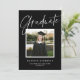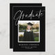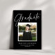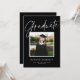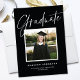 Este anúncio de formatura em chic apresenta um fundo preto chic (personalizável), tipografia elegante e uma foto quadrada. "Formando", o nome do seu aluno e todos os outros textos são brancos. Este é um design elegante e chique. Você pode personalizar este design ainda mais adicionando outra foto ou texto adicional ao backer.