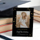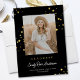 Este anúncio de graduação chic, porém caprichoso, apresenta um fundo preto (personalizável), uma aspersão de estrelas douradas falsas, "FORMANDO" falsa de ouro e uma foto vertical. Você pode personalizar este design ainda mais adicionando outra foto ou texto adicional no verso.