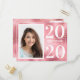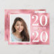 Cartão-postal de graduação personalizado de fotos, cor-de-rosa, com estrelas douradas, concebido para um estudante se formar em 2020, mas personalizável para qualquer ano.