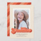 Este anúncio de graduação de fotos de solteiros divertidos apresenta a palavra formando escrita em um roteiro de estilo retrô em tons de coral. A parte traseira da placa tem um padrão de faixa diagonal de coordenação de cor.
