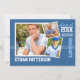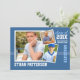Perfeito por mostrar a vida do seu filho com uma colagem de fotos da infância até o dia de hoje. Com texto esportivo, este design é perfeito para o formando que é atleta ou fã de esportes. Cada linha pode ser personalizada no verso para que a versatilidade seja um convite festa de formatura (como mostrado) ou transformada facilmente em um anúncio apenas.