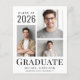 Anúncio de graduação moderno, favorável ao orçamento, com 3 fotos, "Formando" em grande tipografia elegante e o nome do formando, ano de aula e escola ou universidade em tipografia simples.