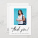 Comemore a sua conquista acadêmica em estilo com o nosso anúncio de graduação de fotos da Universidade Obrigado postal. Este cartão postal moderno e personalizado permite-vos mostrar a vossa fotografia de graduação, mostrando orgulhosamente o vosso sorriso de feição juntamente com o vosso nome, ano de aula e nome da escola. A frente do cartão-postal apresenta um design elegante e elegante com uma letra moderna, capturando a essência desta ocasião importantíssima. Partilhe a sua alegria e o seu sucesso com a família e os amigos, expressando a sua gratidão pelo seu apoio ao longo de toda a sua viagem educativa. Na parte de trás do cartão postal, você tem a oportunidade de incluir um obrigado sincero que você envia, uma aprovação especial e seu endereço de retorno. Personalizar esta seção permite que você mantenha conexões significativas com os entes queridos e mostre seu apreço por seu encorajamento. Este cartão postal não é apenas uma bela maneira de dizer "obrigado a ti", mas também serve como uma plataforma para partilhar os vossos planos para o futuro. Você pode personalizar a mensagem para que as pessoas saibam sobre suas aspirações de carreira ou outras perseguições acadêmicas, permitindo que elas celebrem suas realizações e apoiem sua jornada pela frente. Nosso postal de Graduação de Fotos da Universidade Obrigado não é apenas um gesto de gratidão, mas também uma chance de fazer uma rede e manter vivas conexões importantes. Serve como um lembrete do seu sucesso e como um vislumbre do futuro brilhante que nos espera. Capture a essência deste momento especial com um postal personalizado que deixa uma impressão duradoura e mantém seus entes queridos próximos enquanto embarca em novas aventuras.