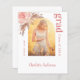 Fundo branco. Decorado com grama-pampas e florais cor-de-rosa pincelados. Personalize e adicione sua própria foto do formando. Adicione o nome do ano e da escola. Com a palavra: Formando escrito com letras grandes. Voltar: Foto do segundo, seu texto.