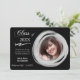 Anuncie a sua formatura com este design de tendências e anúncio elegante! Sua fotografia está à direita, dentro de uma elegante pintura prateada, moldada em círculo. Seu texto personalizado está em prata correspondente à esquerda. Tudo é colocado num fundo negro dramático. A parte traseira da placa é preta e sólida. Todo o texto é facilmente personalizado.