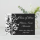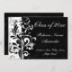 Graduação ou convite de festas chic e elegante apresenta fundo preto com espirais e rolhas ricos de enrolação branca. Um estilo bonito, feminino, mas clássico e formal de convite. O preto e branco de alto contraste acrescenta o toque perfeito para o formando feminino de qualquer classe ou ano.