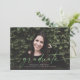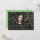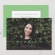 Este anúncio de graduação de fotos sombrias do cheio apresenta a palavra "formando" escrita em roteiros verdes na frente. Tem espaço para o nome do formando, ano de aula e escola. A parte traseira do cartão pode ser usada para uma mensagem pessoal ou para os detalhes do convite de festa de formatura.