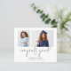 Um valor para o alternativo do ORÇAMENTO em tamanho menor de 4,5 x 5,6" de semirbrilho de 110 lbs, que é de espessura semelhante a um cartão postal (no entanto, não é adequado para uso como cartão postal). POR FAVOR, NOTE que existe UM por folha. Anúncio de Graduação de Script de Foto Orçamento 2. Basta substituir as duas fotos de exemplo por seu próprio texto e personalizar o texto conforme necessário. O Formando de Parabéns está em um script de conjunto de na moda.