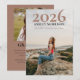 Anúncio de formatura simples e elegante com duas fotos, apresentando o ano em uma fonte serifada grande com nome e escola abaixo sobreposta à sua foto de retrato completa de 5" x 7" na frente. A parte traseira apresenta uma foto quadrada menor no topo com a palavra "Graduado" abaixo e sua mensagem de anúncio exclusiva abaixo. Design composto por Holiday Hearts Designs (direitos reservados). Fotos de modelo de espaço reservado cortesia Unsplash.