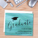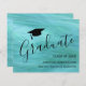 Este anúncio de graduação moderno apresenta um boné de formatura sobre um fundo turquesa. Personalize com seu nome, escola e ano.