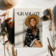 Na moda e cartão único de anúncio de graduação para enviar para a família e os amigos. Há um quadro de arco de cor creme ao redor da sua foto. Diz "formando" no topo com o seu nome escrito por baixo numa letra retrógrada.