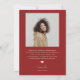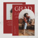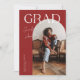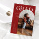 Cartão de anúncio de na moda e graduação moderna para enviar para a família e os amigos. Há uma trama vermelha ao redor da sua foto. Diz "FORMANDO" no topo com o seu nome escrito por baixo dele numa letra casual.
