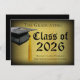Graduação Faculdade Negra Tradicional, Segundo grau ou Partido Este anúncio clássico de graduação de Boné e Tassel tradicional ou convite de festa de formatura é perfeito para qualquer formando de nível superior, segundo grau ou universidade. Design clássico apresenta design preto e dourado com boné formando e talão, escrevendo inglês antigo. Nenhuma foto necessária, excelente para incluir as fotos do mais velho. Excelente Masculina ou Feminina para Homens, Mulheres, Raparigas ou Meninos. Muito fácil de personalizar com suas informações. Anúncio de Graduação Personalizada do Boné Dourado e do Tassel