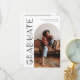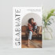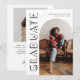 Cartão de anúncio de na moda e graduação moderna para enviar para a família e os amigos. Há um quadro de arco branco ao redor da sua foto. Você pode adicionar uma segunda imagem no verso e a mensagem é editável. Diz "formando" na lateral da carta em fontes celestiais e boho tipografia.