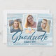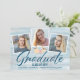 Anuncie a formatura do seu filho com este cartão único de anúncio de formando moderno de 3 fotos na praia do na moda, que é facilmente personalizável para as suas próprias necessidades. Você pode usar o verso para obter mais informações, se necessário, ou como um convite para festa de formatura.