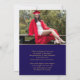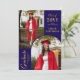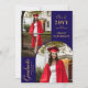 O anúncio de graduação Dourada de azul de fotografia moderno apresenta três das suas fotos favoritas do seu formando, com o ano de aula, o nome do formando e a escola, universidade ou universidade, grau, qualificação ou planos futuros com a camada moderna de roteiro de caligrafia branca "Formando". No reverso, adicione sua mensagem personalizada. Simples, na moda e elegante. Criado por ©2025 Evco Studio www.zazzle.com/store/evcostudio