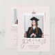Anúncio de Graduação Moderna Elegante Elegante Cor-de-Rosa e Rosa Dourada. Este cartão de anúncio de graduação em na moda apresenta um elegante roteiro rosa dourado e duas fotos para personalização, 1 na frente e atrás. A foto foi projetada para se parecer com um instantâneo vintage enquanto ainda é na moda para o formando de hoje.