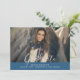 Anúncio de Graduação Elegante Simples com um design simples e elegante a azul. Adicione uma foto e detalhes de graduação para personalizar. A cor de fundo no verso do convite pode ser alterada para complementar a foto ou para adicionar uma cor escolar.