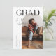 Cartão de anúncio de na moda e graduação moderna para enviar para a família e os amigos. Há um quadro de arco branco ao redor da sua foto. Diz "FORMANDO" no topo com o seu nome escrito por baixo dele numa letra casual.