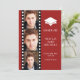 Este moderno anúncio de graduação é perfeito para anunciar a graduação do seu adolescente de uma maneira divertida. As fotos na frente são organizadas no estilo de uma faixa de filme, estrelando o graduado em seu filme intitulado "Graduação" com um fundo vermelho rico. Se você precisar de alguma alteração no design, como cor, texto ou fonte, por favor entre em contato conosco em seamistmail@gmail.com. Adoramos fazer parte de suas memórias felizes.