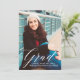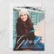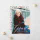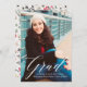 Anuncie sua formatura em estilo com um anúncio elegante de graduação floral. O design apresenta a palavra "formando" em uma fonte de script de rico, espaços reservados para texto personalizado e uma imagem, e um bonito padrão floral no verso.