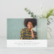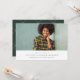 Comemore seu formando com este anúncio clássico e simples de graduação em uma foto. O tipo abaixo da foto horizontal inclui bastante espaço para o nome do formando, faculdade ou segundo grau e ano de caçador verde, que corresponde à parte traseira da carta. A cor verde pode ser ajustada a qualquer cor escolar clicando em "Personalizar mais".