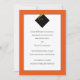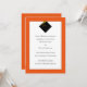 Design de anúncio clássico de graduação com boné preto e tassel de ouro em fundo laranja.