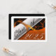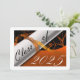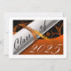 Cartão de graduação laranja e branco com diploma e ano de graduação. O fundo é um fundo preto com letras brancas para os anúncios de graduação.