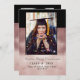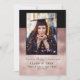 Um anúncio de graduação Mínimo Moderno e Simples de Rosa Preto com um quadro sobre sua escolha de foto. A parte traseira apresenta outra foto e mais detalhes sobre seu formando.