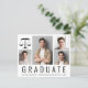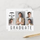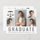 Anúncio de graduação da Faculdade de Direito Moderno, amigável ao orçamento, apresentando uma ilustração das escalas de justiça, uma colagem de 4 fotos, "Formando" escrito na parte inferior em letras grandes e seu nome, faculdade de Direito e ano de aula em tipografia simples. No verso, adicione uma foto adicional e uma mensagem personalizada.