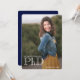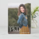 Um anúncio de graduação de PhD em foto que inclui seu nome, ano de aula, nota de obrigados e muito mais. A frente do anúncio mostra uma foto vertical. O outro lado tem um fundo azul. Troque a foto, personalize as palavras, adicione o anúncio ao seu carrinho, e deixe que todos saibam que você fez algo grande. Design de Natal de Anúncio de PhD Azul-Foto | ©Melissa Patton - Designer<i>Fotografia © Storytree Studios, Stanford, CA</i>