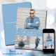 Adicione suas 3 fotos favoritas na frente destes anúncios de graduação que apresentam a turma e a palavra GRADUADO em letras elegantes em um fundo azul claro com seus detalhes no verso. MAIS CORES e designs em nossa loja.