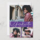 Adicione suas 3 fotos favoritas na frente destes anúncios de graduação que apresentam a turma e a palavra GRADUADO em letras elegantes em um fundo roxo (a cor pode ser alterada usando o link Personalizar e nossas ferramentas de design) com seus detalhes no verso. Mais designs em nossa loja.