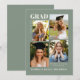 Celebre sua formatura com este cartão de anúncio de formatura moderno com fundo verde sage e fotos. Projetado com um layout elegante e contemporâneo, este cartão tem espaço para quatro fotos, permitindo que você compartilhe seus momentos favoritos de final de curso em um design sofisticado.