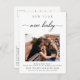 Cartão postal moderno e elegante de anúncio de gravidez para o Ano Novo. O design apresenta uma única foto, texto 'ano novo bebê novo' em letras modernas, sua mensagem e data prevista. Maneira perfeita de Anunciar a gravidez e desejar a todos um Feliz Ano Novo!