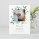 Cartão com fotos de anúncio de gravidez na floresta de eucalipto da Trendy, projetado para ser rápida e facilmente personalizado de acordo com suas especificidades. Uma foto quadrada é recomendada.
