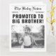 Faça com que o anúncio da gravidez do seu irmão mais velho seja engraçado e memorável! Nosso cartão "Promovido ao irmão mais velho" permite que você mostre fotos e compartilhe as notícias de uma forma única. Com modelos personalizáveis, você pode adicionar seu próprio toque pessoal ao anúncio. Compartilhe a alegria com a família e os amigos com este anúncio divertido e criativo. Compre agora e comece a criar o seu próprio anúncio de gravidez, único e personalizado, do irmão mais velho.