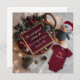Essa composição plana apresenta um encantador pinguim de crochê vestido de Papai Noel, uma cesta festiva repleta de enfeites natalinos e folhagens, e um body vermelho de bebê com espaço para personalizar o nome do seu bebê. Aninhado dentro da cesta está um quadro-negro clássico exibindo sua mensagem especial. Se você está compartilhando suas novidades nas redes sociais, imprimindo um cartão de recordação ou adicionando um momento especial ao álbum do bebê, esse design de Natal neutro em termos de gênero é uma maneira alegre de celebrar a temporada e sua família em crescimento.