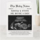 Se você está procurando uma maneira criativa de anunciar sua emocionante notícia, esse cartão de anúncio de gravidez no estilo do jornal é a escolha perfeita. Este cartão apresenta uma busca divertida por palavras de bebês e uma seção de predições de bebês fazer mais estilo de jornal. Inclua uma fotografia de um sonograma da sua pequena e algumas fotos de gravidez para tornar seu anúncio ainda mais exclusivo.