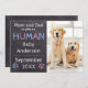 Parabéns! Deixe seu melhor cachorro e seu novo cão guarda anunciar sua gravidez e a notícia de seu novo melhor amigo com esse cartão de anúncio de gravidez de cachorro adorável. "A mãe e o Pai estão a dar-nos um Sobrenome humano... o bebê... o teu mês/data 20xx. Mande para a família e amigos o anúncio mais bonito da gravidez. COPYRIGHT © 2020 Judy Burrows, Black Dog Art - Todos Os Direitos Reservados. Anúncio de gravidez no cão