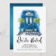 O Anúncio de Movimentação de Cores de Água Azuis apresenta uma cor de água na moda de uma porta azul frontal com limoeiros de ambos os lados da porta. Abaixo está o texto "We've Moved" na tipografia moderna do script de caligrafia escrita à mão com seu novo endereço e texto personalizado abaixo. Elaborado por ©Evco Studio www.zazzle.com/store/evcostudio