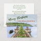 Feliz Natal neste belo cartão colocado num lago com uma doca e as montanhas em primeiro plano — com uma adorável árvore de Natal como peça central no cais para o seu anúncio de mudança. Muito para personalizar nas costas. Qualquer pergunta sobre design, envie um e-mail para charmdesignstudio@rcn.com e ficaremos felizes em ajudar.