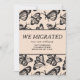 O "Anúncio de Movimentação da Migração" é uma forma encantadora e espirituosa de informar amigos e familiares de uma mudança de endereço. Projetado com um padrão de borboletas delicadas, simboliza a transformação e a jornada para um novo começo. A placa apresenta um trocadilho lúdico, "NÓS MIGRÁMOS", destacando a movimentação, seguido dos novos detalhes de endereço em uma fonte limpa e elegante. Os detalhes dos anúncios são colocados em um cenário de pêssego suave que adiciona calor ao anúncio, garantindo que seja uma atualização agradável para todos os destinatários.