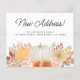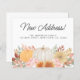 Você vai para casa em breve? Este cartão de anúncio móvel do orçamento é decorado com abóboras de aquarela, folhagem de outono e flores. Diz "Novo Endereço" na tipografia de na moda. Facilmente personalizável. Original Watercolor © Michele Davies.