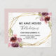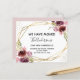 Orçamento Floral Moderno e Elegante Folha de Ouro Faux Geométrico Primavera Burgundy e Flores Rosa Esmagadas Movemos Novos Cartões de Casa ou Novos Endereços - inclui uma bela e elegante tipografia de roteiro com floral e verde modernos para a celebração especial de Novo Lar ou Novo Endereço.