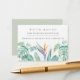 Anuncie sua nova casa tropical vivendo com nossos anúncios personalizados e personalizados de praia em movimento! Estas novas placas de endereço de tamanho cartão de visita apresentam lindas paisagens aquáticas e folhas tropicais. Perfeito por deixar amigos e familiares saberem que se mudaram para sua nova casa na Flórida. A design mostra um verde exuberante com "Nós nos movemos" na tipografia moderna, tudo a partir da minha arte original pintada à mão. Personalize com seu novo endereço e nomes usando os campos de modelo. Esta mudança de endereço é uma boa forma, mas sofisticada de compartilhar sua nova casa doce da Flórida. Ideal para casas na Flórida, Costa Rica, ou qualquer local tropical. Projetado por Victoria. Saiba mais em www.zazzle.com/vginvites.