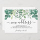 Avise a família e os amigos que você mudou com este Cartão de Anúncio de Novo Endereço Botânico. É decorado com aquarela eucalipto verde e tipografia com script de na moda. Facilmente personalizável. Original Watercolor © Michele Davies.