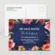 Marinho Azul e Cor de Água Floral Rosa-Rosa Moderna e Elegante O Primavera de Nova Casa ou Novos Cartões - inclui uma bela e elegante tipografia de scripts com flores botânicas modernas e verde para a celebração especial de Nova Casa ou Novo Endereço.